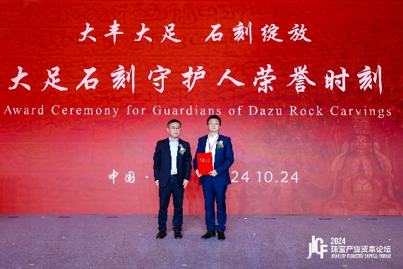 论坛上,中国珠宝总经理张宇波获重庆市大足区委常委、组织部部长张明宣布“大足石刻守护人”荣誉证书,表扬中国珠宝立异弘扬大足石刻文化的孝敬。中国珠宝副总经理李志勇受邀加入“现代珠宝与经典文化的碰撞融合”圆桌论坛,与来自差别领域的专家配合探讨珠宝文创升级之道。