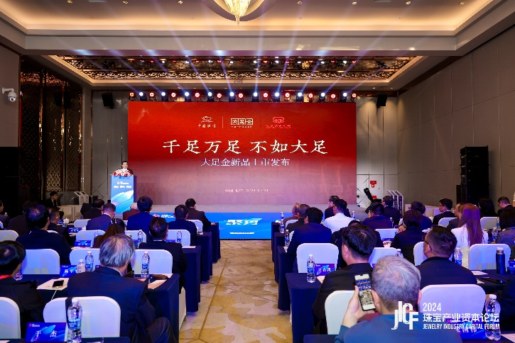 中国珠宝副总经理李志勇从“大足IP”“项目定位”“产品主题”“营销流传”四个方面对“大足金”进行了详细介绍,“大足金”系列以“大丰大足,美好人生”为理念,提取“富足、知足、满足”人生三大美好愿景作为产品主题,划分打造金条、摆件等储值收藏产品,平安扣、吊牌、串珠等精美黄金首饰,以及手机贴、红包等趣味文创产品,颇具文化内涵,满足差别人群需求。“千足万足 不如大足”的流传口号引发论坛观众的点赞,现场掌声不绝。