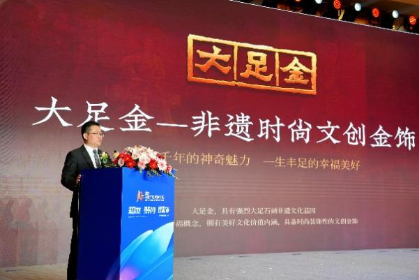 中国珠宝副总经理李志勇从“大足IP”“项目定位”“产品主题”“营销流传”四个方面对“大足金”进行了详细介绍,“大足金”系列以“大丰大足,美好人生”为理念,提取“富足、知足、满足”人生三大美好愿景作为产品主题,划分打造金条、摆件等储值收藏产品,平安扣、吊牌、串珠等精美黄金首饰,以及手机贴、红包等趣味文创产品,颇具文化内涵,满足差别人群需求。“千足万足 不如大足”的流传口号引发论坛观众的点赞,现场掌声不绝。