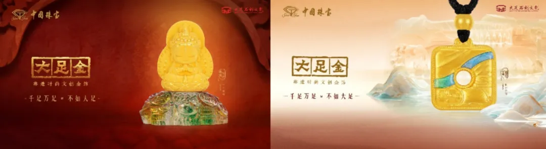 大足石刻享誉世界,拥有凌驾1200万年的历史,集中国石刻艺术精华之大成,被誉为人类石窟艺术史上最后的丰碑,是名副其实的东方艺术宝库。中国珠宝携手大足石刻,与千年石窟艺术对话,打造非遗时尚文创金饰——“大足金”,将慈善宁静的巨型卧佛、金碧辉煌的千手观音、庄严威风的大足狮等经典元素立异演绎,将石刻艺术背后的智慧与祝福融入时尚金饰,以萌趣生动的年轻人视角,重塑千年大足魅力,k8凯发天生赢家精湛、趣味十足,?付与古板文化瑰宝以全新活力,让古典文化与现代年轻审美同频共振,为消费者带来全新文创金饰消费体验。